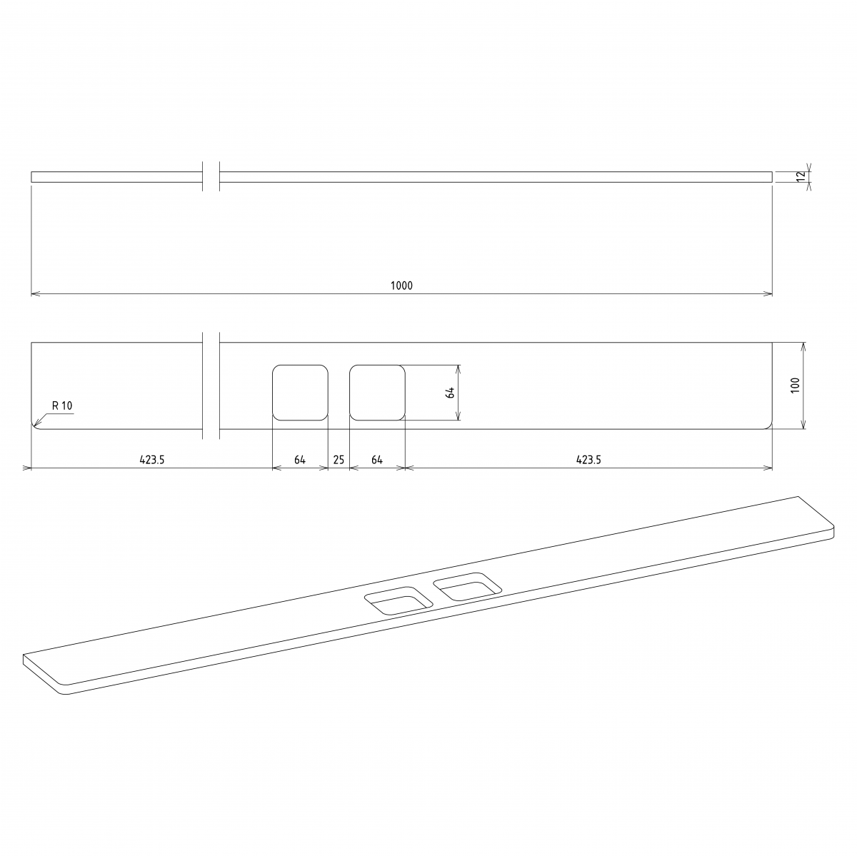 Rozmiar: 1000x12x100 mm