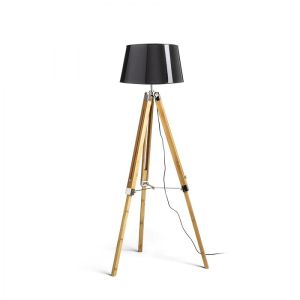 ALVIS/RIDICK podłogowa błyszcząca czarna folia złota/bambus/chrom 230V LED E27 15W