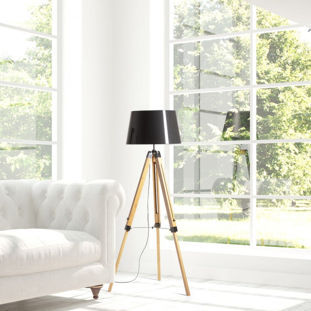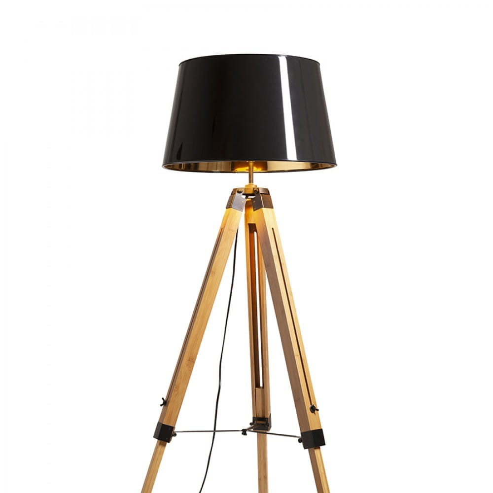 ALVIS/RIDICK podłogowa błyszcząca czarna folia złota/bambus/czarna 230V LED E27 15W
