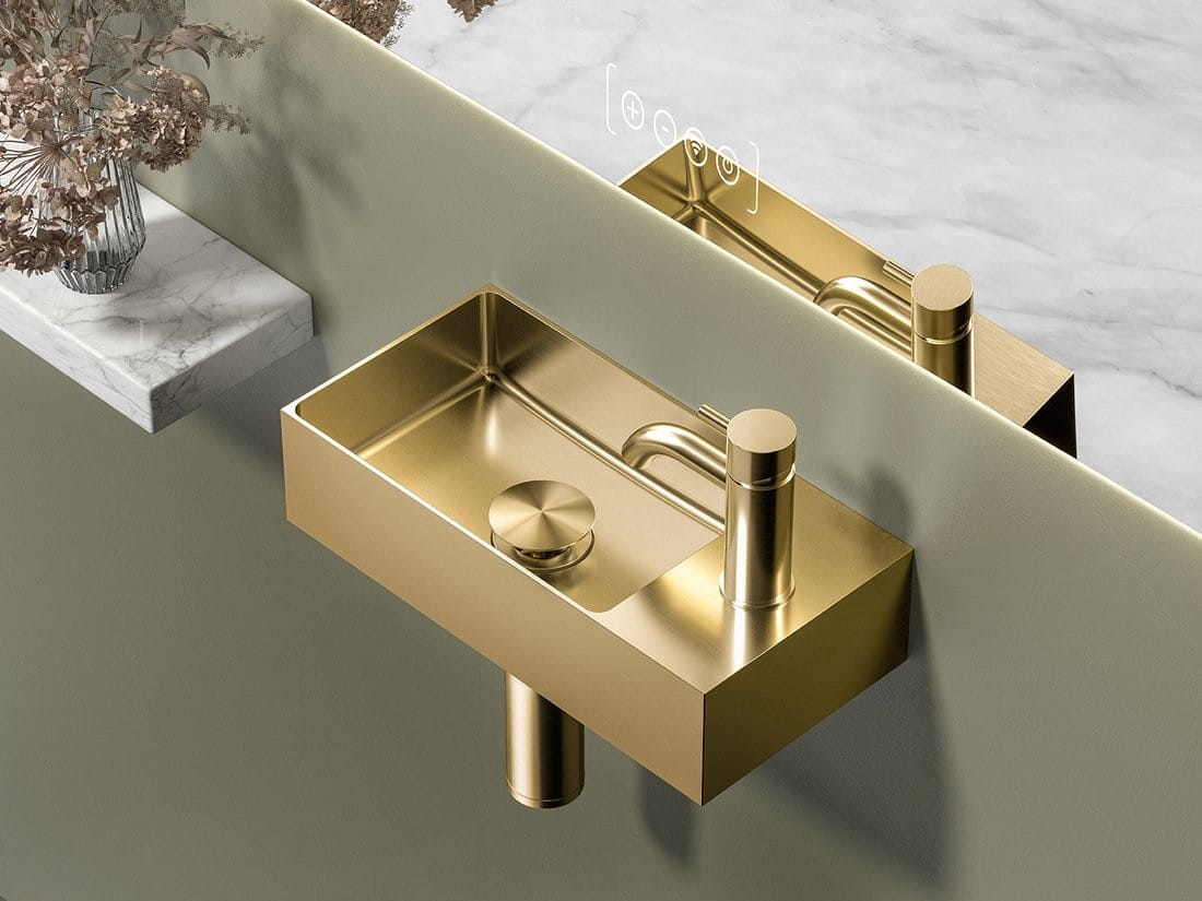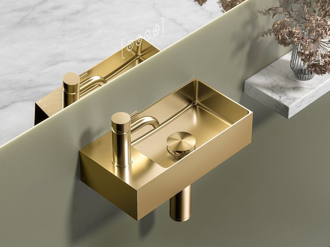 AURUM umywalka ze stali nierdzewnej, 36,5x18cm, z korkiem, lewa/prawa, złoto mat