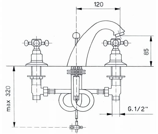Bateria Retro umywalkowa 3-otworowa Reitano Atea R302 chrom