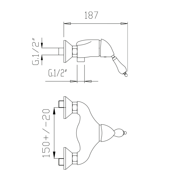 Złota bateria wannowa Retro ścienna ze słuchawką prysznicową Emmevi Laguna 40011OR