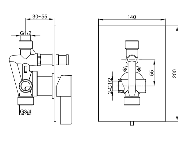 - Montaż podtynkowa z przełącznikiem