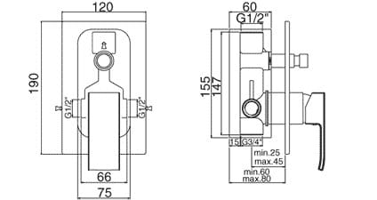PaffoniBateria prysznicowa podtynkowa z przełącznikiem Paffoni Level LES019CR