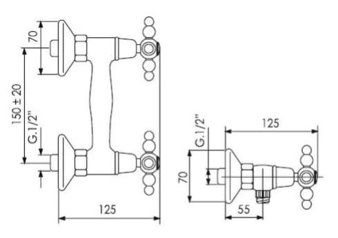 Typ: bateria prysznicowa Retro, ścienna