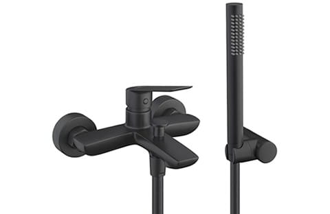 Bateria prysznicowo-wannowa 19x11 cm z rączką prysznicową i wężem kompletna Demm Sleek 9900 czarny mat
