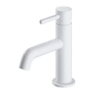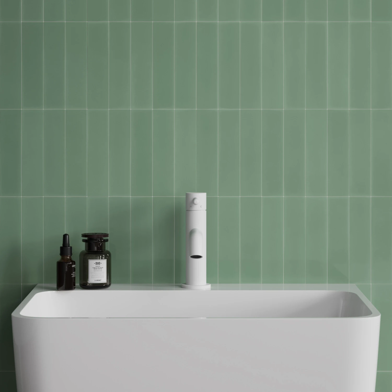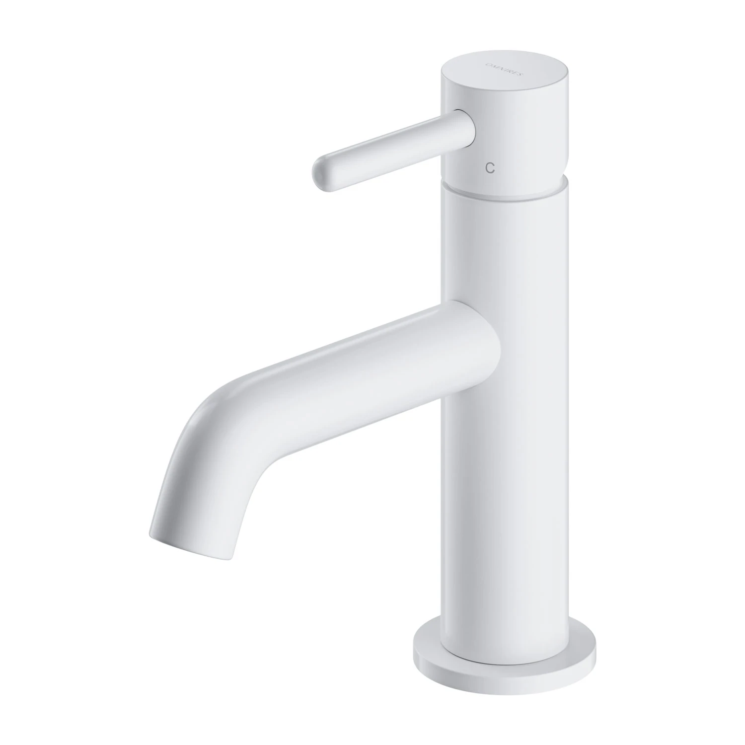 Nowoczesna forma. Bateria umywalkowa wyróżnia się kompaktową, geometryczną formą, która harmonijnie łączy prostotę i elegancję. Matowe wykończenie w śnieżnobiałym odcieniu doskonale wpisuje się w nowoczesne, skandynawskie i minimalistyczne aranżacje, podkreślając ich lekkość i świeżość.