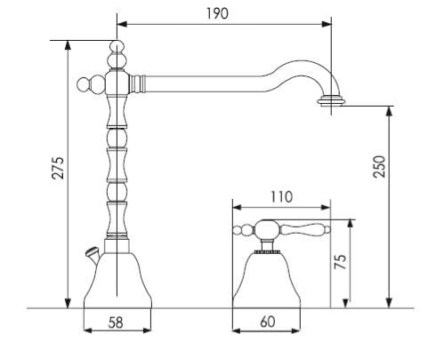 GiuliniBateria umywalkowa Retro 2-uchwytowa wysoka Giulini Praga 7556 bronzo