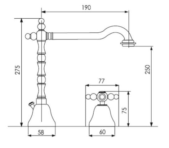 GiuliniRetro bateria umywalkowa 3-otworowa wysoka Giulini Parigi 7312 chrom