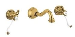 Bateria umywalkowa ścienna 3-otworowa Retro Giulini Praga 7522 złota