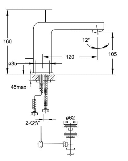 Bateria umywalkowa Steinberg seria 120 chrom 1201020