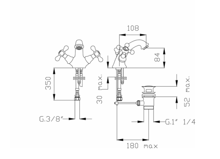 Bateria umywalkowa stojąca Victorian, firmy Fromac. 2-uchwytowa bateria do zamontowania nad zlewem lub umywalką. Wyposażona jest w dwa zawory z mosiężnymi głowicami i ceramicznymi wkładami do ciepłej i zimnej wody i w dwa metalowe pokrętła o klasycznej formie, które umożliwiają niezależne sterowanie. Dzięki chromowanemu wykończeniu bateria charakteryzuje się estetycznym wyglądem, przez co stanowi stylowy i elegancki element wyposażenia każdej kuchni i łazienki.