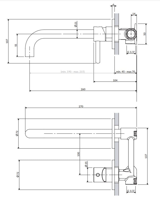 - zasięg wylewki od powierzchni płytek: 19-21,5 cm
