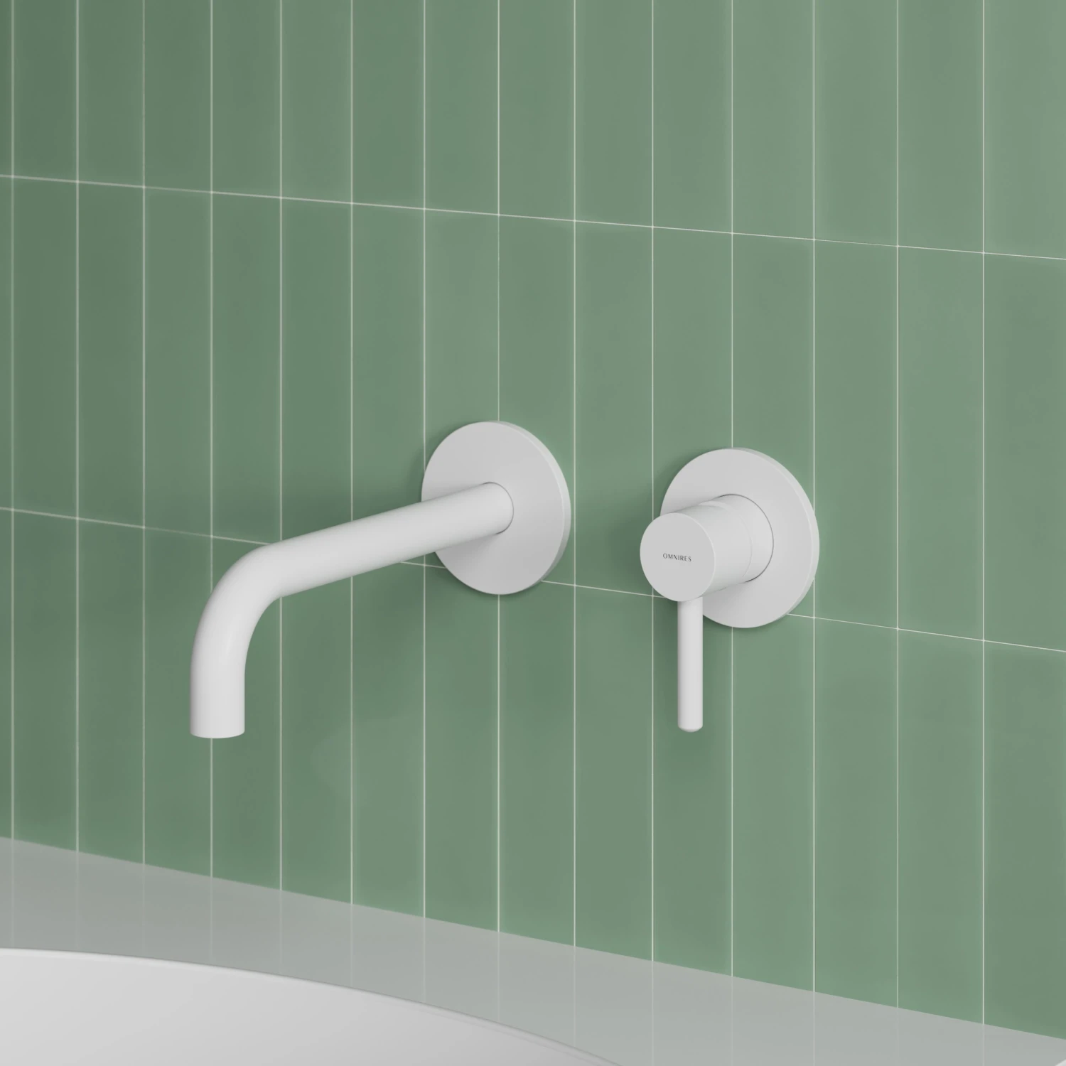 Bateria umywalkowa podtynkowa 2-otworowa, z długą wylewką Omnires Y1215HLWM biały mat