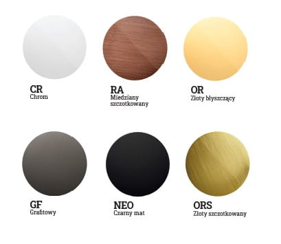 - inne dostępne kolory: złoty, złoty szczotkowany, miedziany, grafit, czarny mat - wybierz w opcjach (towar na zamówienie, czas oczekiwania 4-6 tygodni), chrom