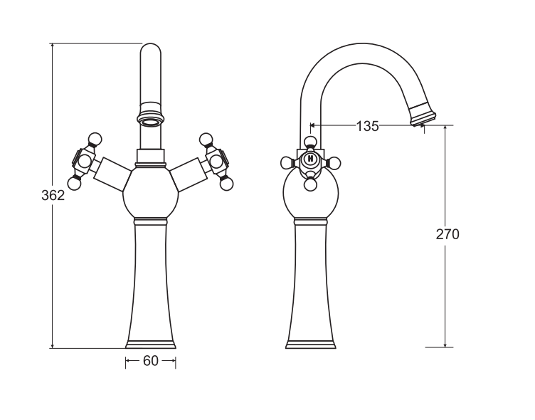 Bateria umywalkowa wysoka 36 cm stojąca Retro Besco BU-RI-CH chrom