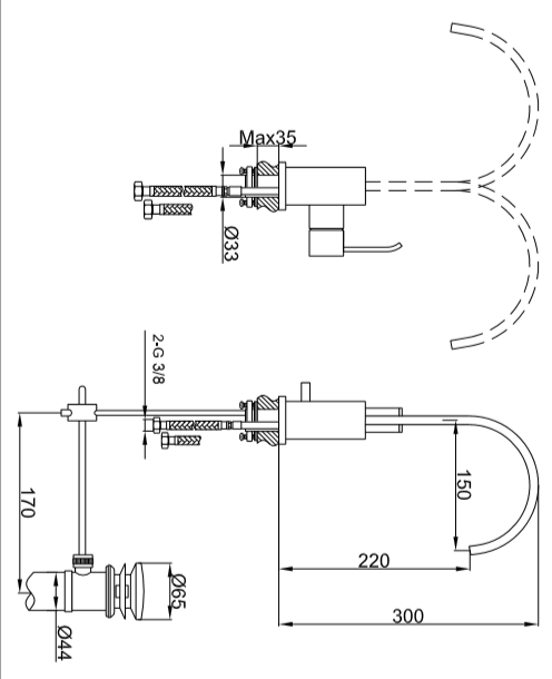 - szerokość od środka podstawy: 150 mm