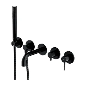 Bateria wannowa, podtynkowa 5-otworowa ze słuchawką prysznicową i krótką wylewką Omnires Y1237-1SBL czarny półmat