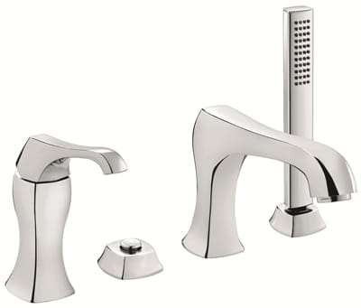 Bateria wannowa 4-otworowa to ciekawa propozycja włoskiej firmy Emmevi pochodzącej z przepięknej kolekcji Ares. Seria Ares charakteryzuje się delikatnością i elegancką formą. Subtelne, łagodne kształty podkreślają formą a niezwykłe uchwyty oraz wylewka jeszcze bardziej podnoszą atrakcyjność zestawu. Przepiękny komplet baterii wannowej z wylewką i słuchawką prysznicową dla osób, które oprócz funkcjonalności cenią sobie styl i atrakcyjną formę. Wysokiej klasy głowica ceramiczna zapewnia płynną regulację strumienia. Bateria w kolorze chrom. Producent udziela 5-cio letniej gwarancji na swoje produkty. Kaczucha.pl wyposażenie łazienek z gwarancją jakości.