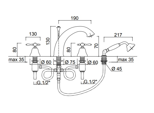 Bateria wannowa 4-otworowa Retro Giulini Praga 7565 chrom