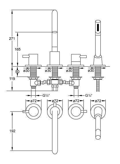 Bateria wannowa 4-otworowa seria 100 chrom Steinberg 1002400