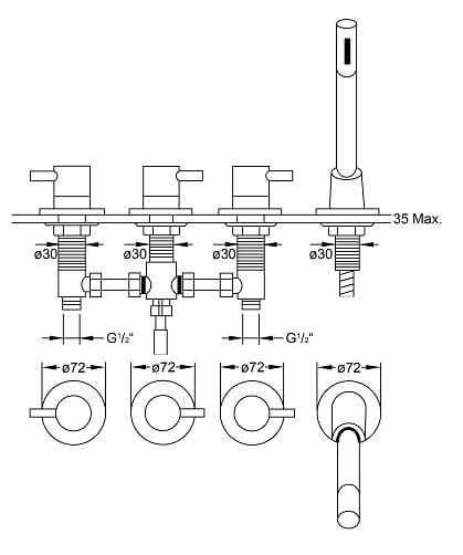 Bateria wannowa 4-otworowa seria 100 chrom Steinberg 1002480