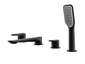 Bateria wannowa 4-otworowa ze słuchawką prysznicową i wylewką Vedo Aletta Nero VBA5040/CZ czarny mat