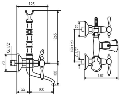 GiuliniRetro bateria wannowa ścienna ze słuchawką prysznicową Giulini Praga 7500 chrom