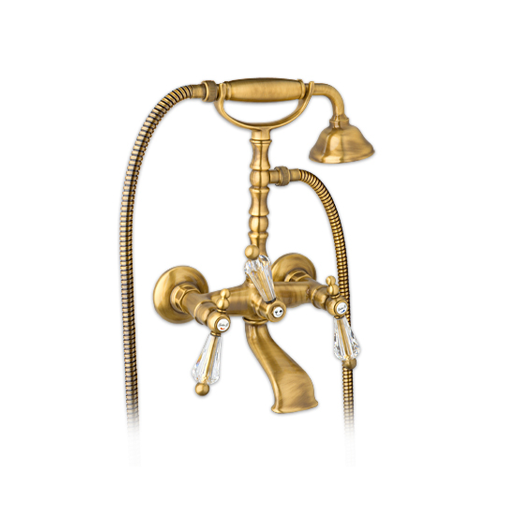 Typ: Bateria wannowa ścienna retro z zestawem prysznicowym