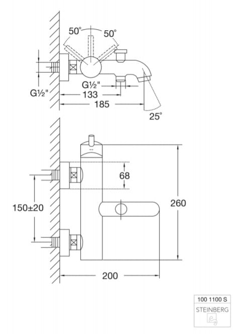 Bateria wannowa ścienna Steinberg 100 1100S czarny mat