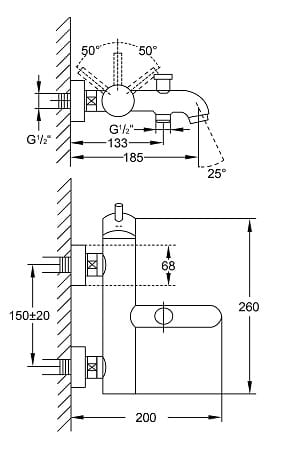 SteinbergBateria wannowo prysznicowa ścienna z termostatem Steinberg seria 100 1001370 chrom