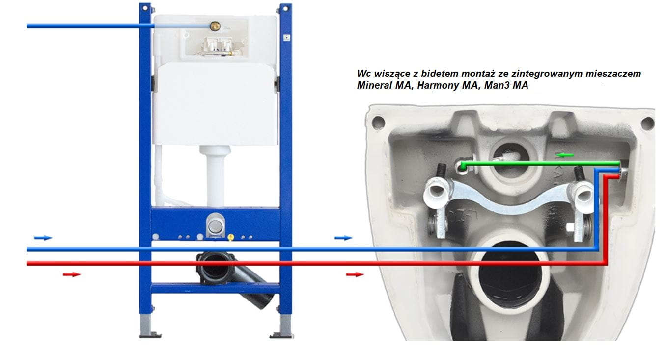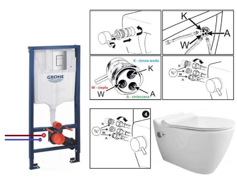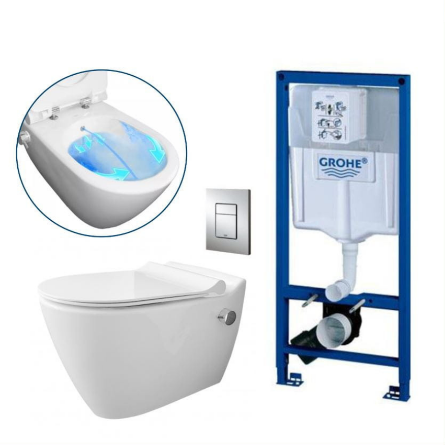Miska WC bezrantowa i bidet w jednym urządzeniu Mineral MA5201, kompletny zestaw ze stelażem podtynkowym Grohe Rapid SL 5w1