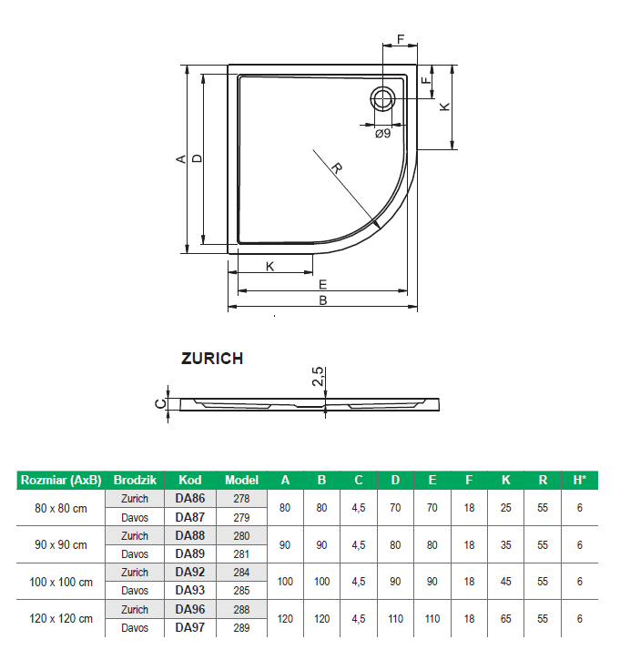 Brodzik półokrągły płaski 80x80 cm Riho Zurich wykonany został z akrylu sanitarnego w kolorze białym, w wysokim połysku. Użyty materiał jest odporny na przebarwienia i zarysowania, przez co brodzik zachowa swoje walory estetyczne na długie lata. Brodzik półokrągły wyróżnia się zgrabną, półokrągłą formą, dzięki czemu sprawdzi się w każdej aranżacji. Brodzik akrylowy półokrągły 80x80 cm przeznaczony jest do montażu na posadzce. Brodzik półokrągły występuje również w innych rozmiarach. Kaczucha.pl zakupy z klasą