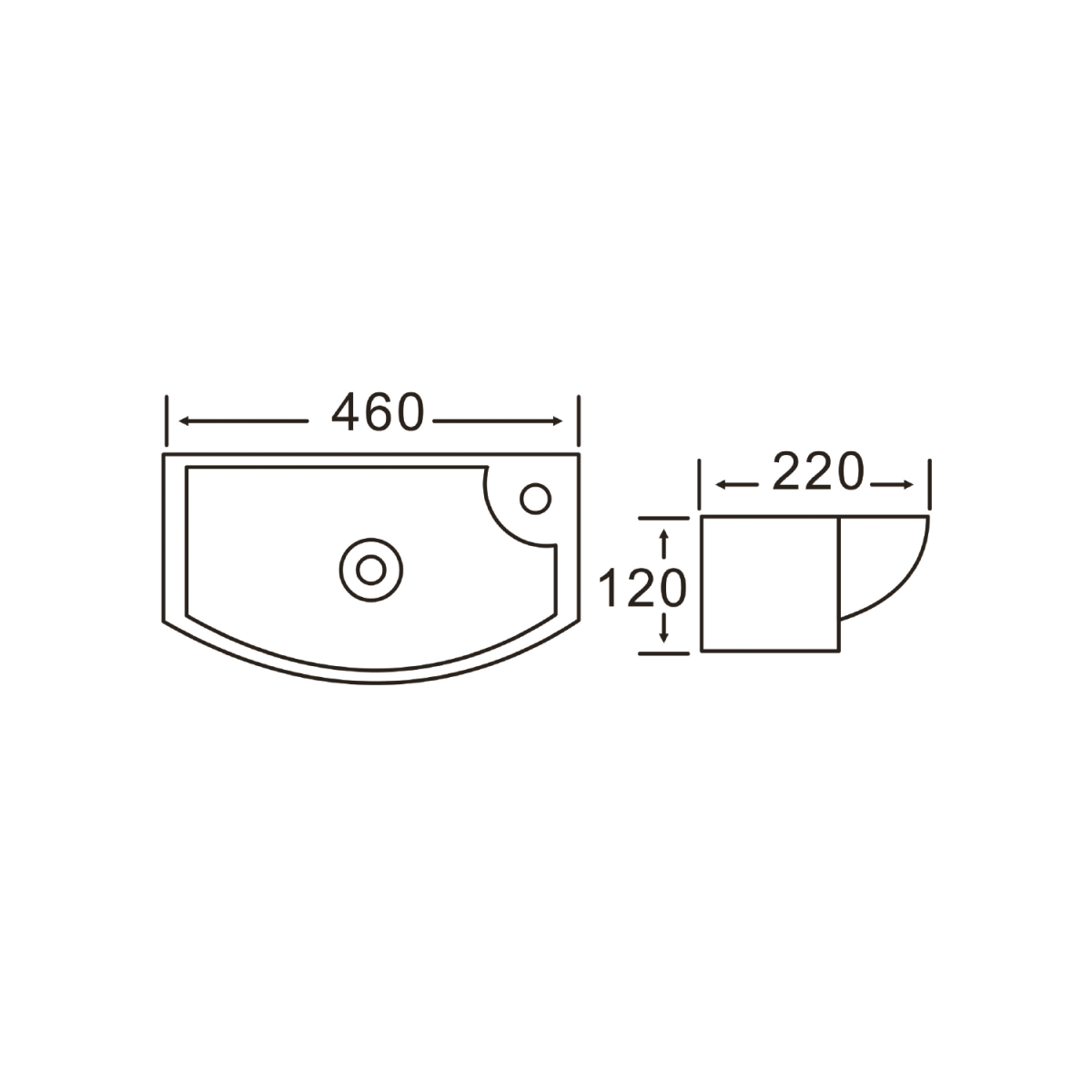 CARLON umywalka ceramiczna, 45x23cm, otwór na baterię po prawej stronie, biały