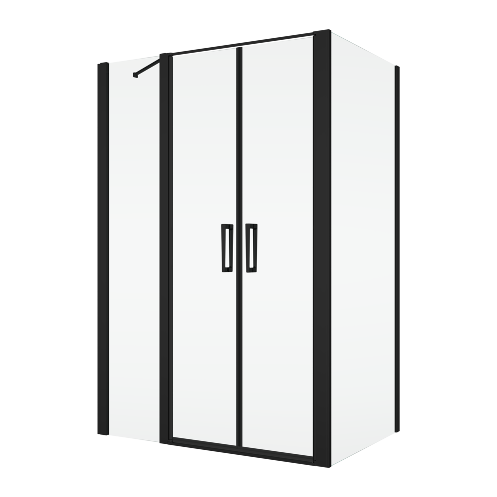 Czarna kabina prysznicowa 120x140 cm z drzwiami wahadłowymi z elementem stałym Ronal Sanswiss Divera D22T32100200607+D22F11400607 czarny mat
