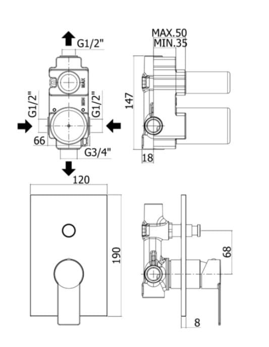 - bateria prysznicowa 2-drożna podtynkowa 12x19 cm TA015NO