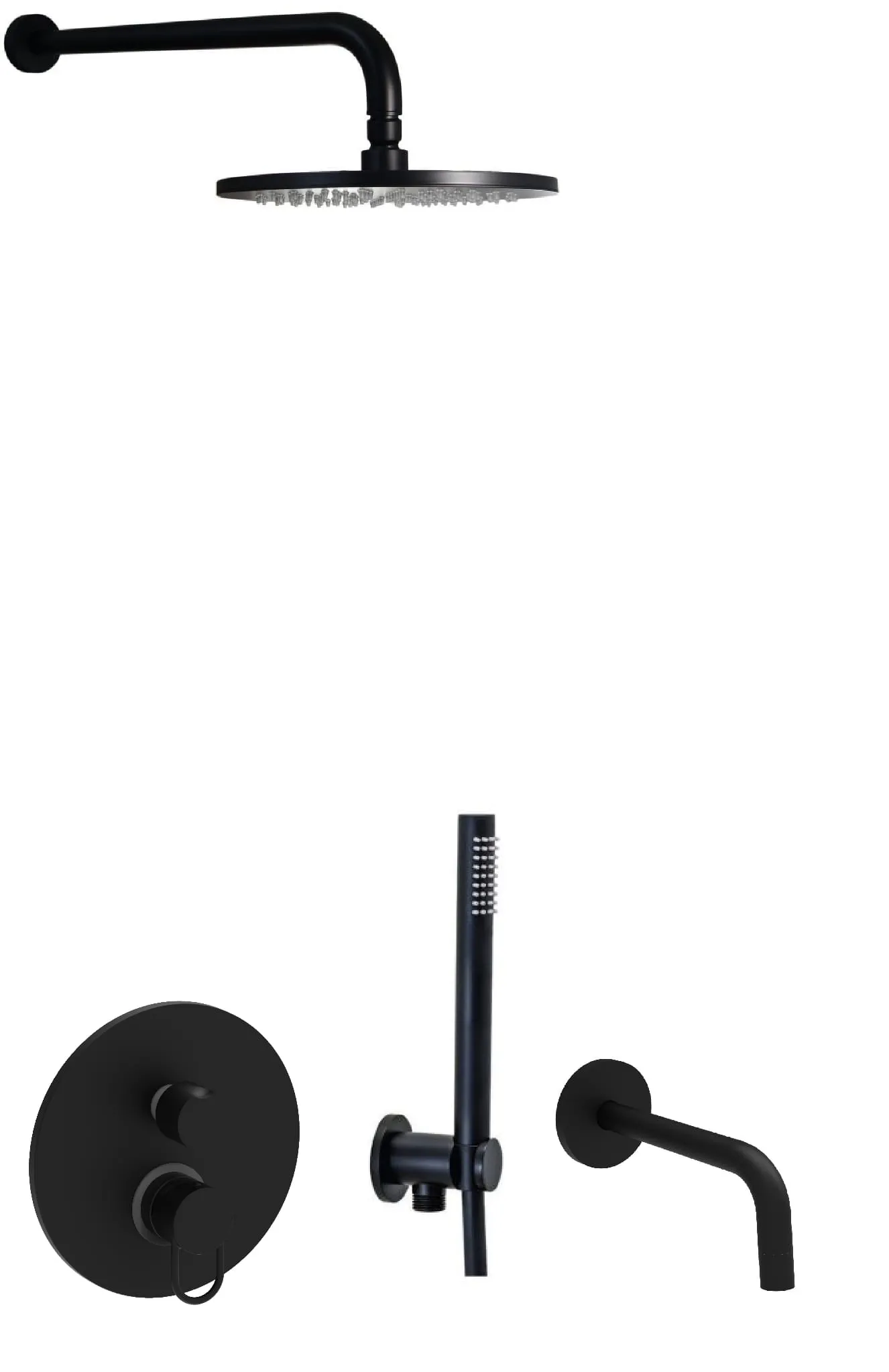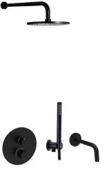 Czarny zestaw natryskowy podtynkowy z deszczownicą okrągłą 22,5 cm, wylewką, baterią 3-drożną podtynkową i słuchawką prysznicową Paffoni Jo-Joker JO019ZSCW3ANO