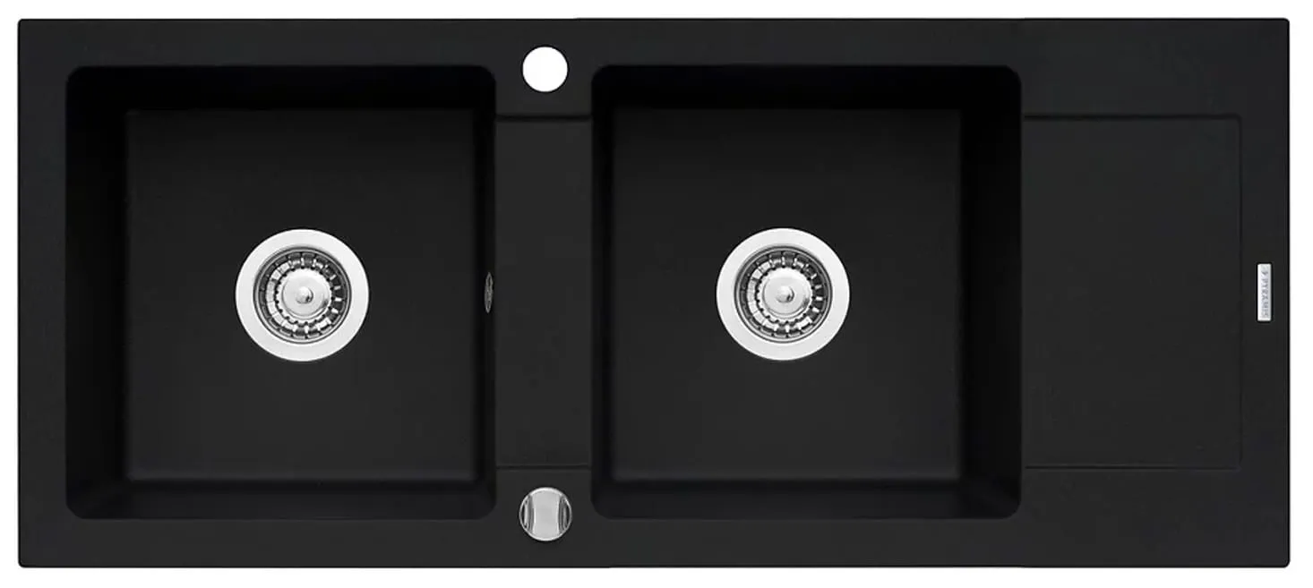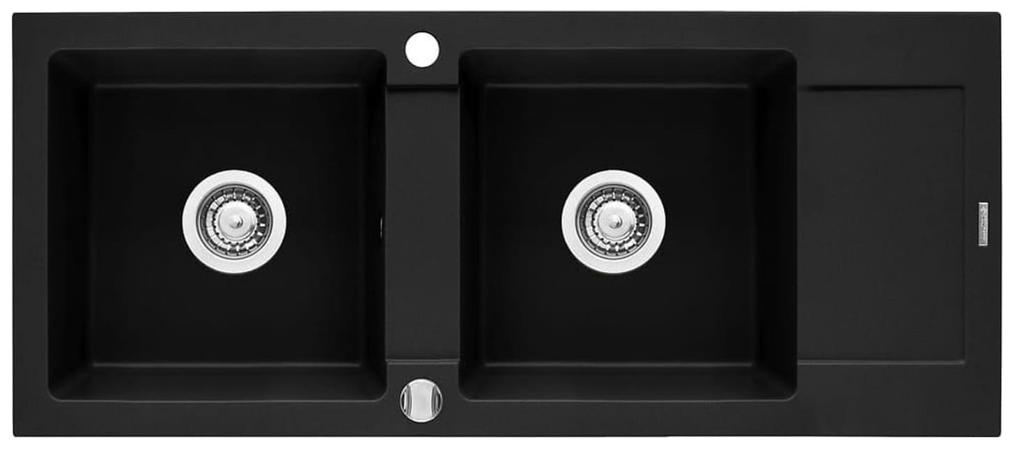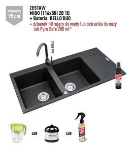 Czarny zlewozmywak dwukomorowy 116x50 cm z baterią Bello Duo 2B 1D Pyramis Mido 070090801Bt