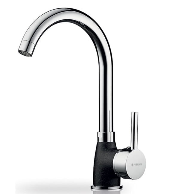 Czarny zlewozmywak dwukomorowy 116x50 cm z czarną baterią Bello Duo 2B 1D Pyramis Mido 070090801Bt