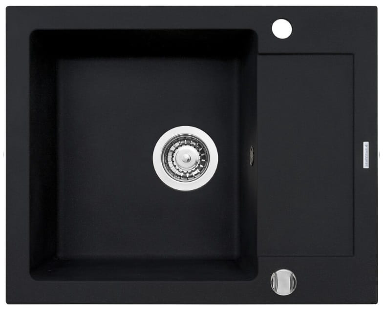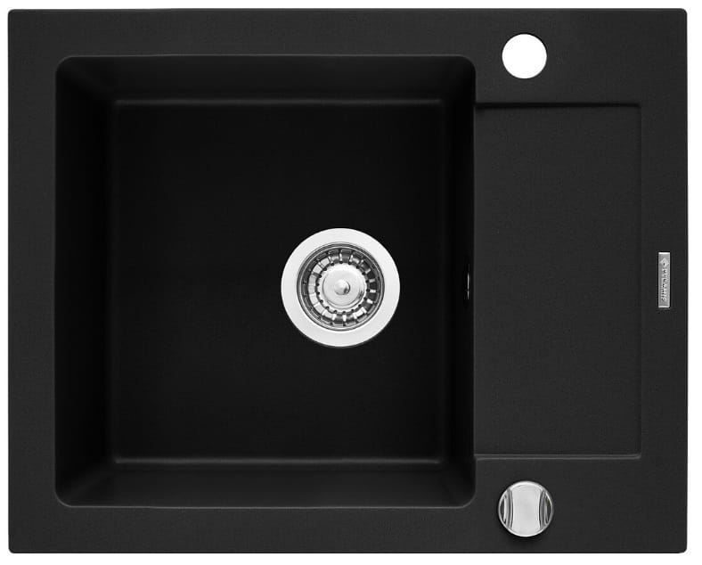 Czarny zlewozmywak granitowy 62x50 cm jednokomorowy z blatem i czarną baterią Flessi Black Edition w komplecie 1B 1D Pyramis Mido 070088401FB