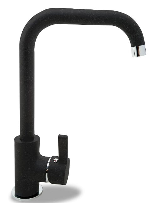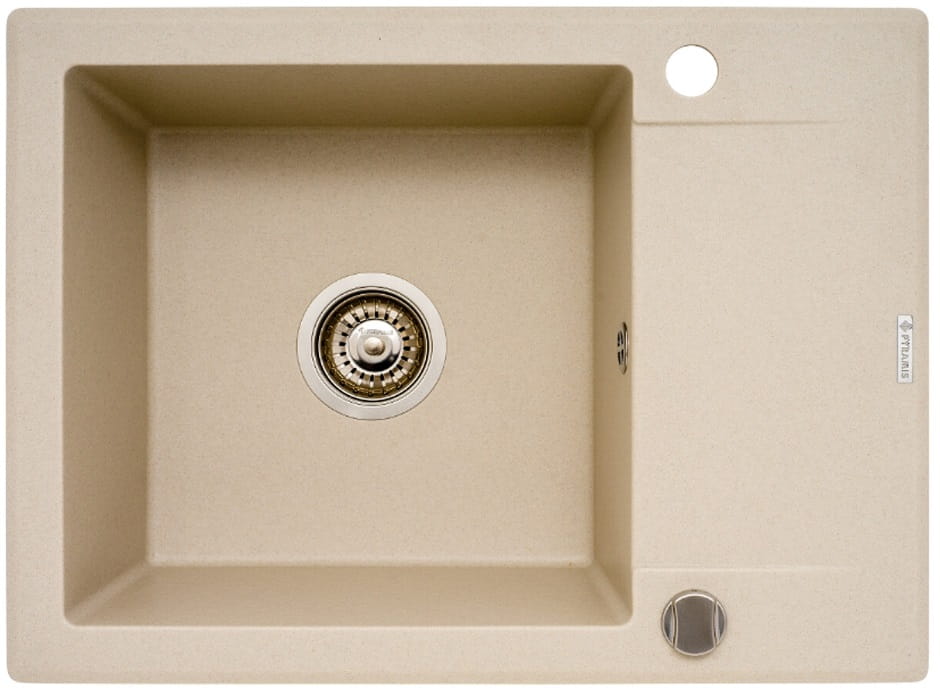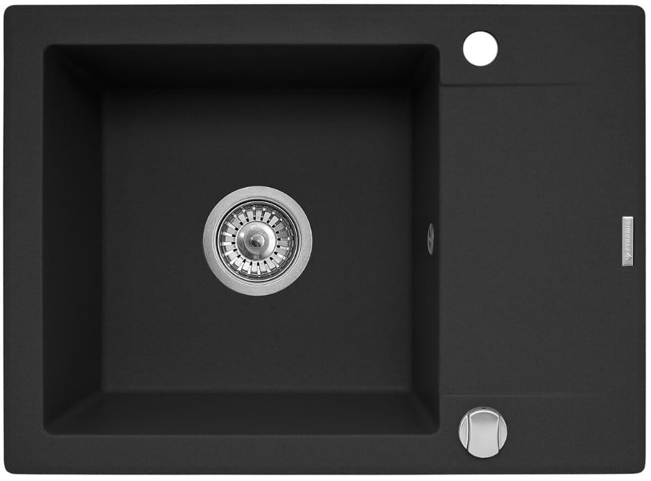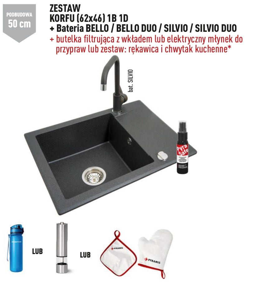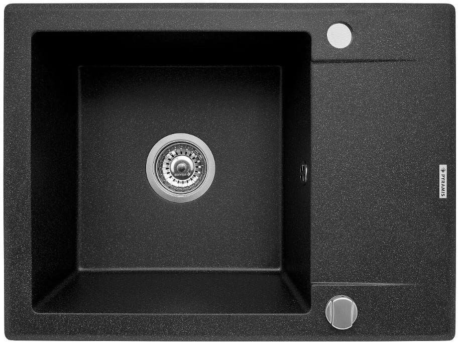 Czarny zlewozmywak jednokomorowy granitowy 62x46 cm z baterią kuchenną 1B 1D Pyramis Korfu 070060301Bn