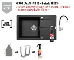 Zlewozmywak jednokomorowy granitowy 76x48 cm w komplecie z baterią Flessi 1B 1D Pyramis Keros 070190311F Volcano