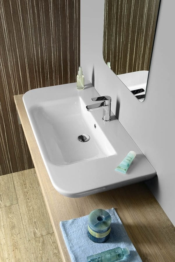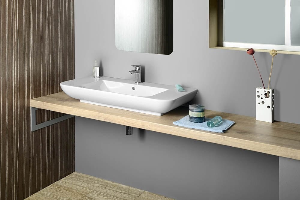 DORI umywalka ceramiczna 90x48 cm, z blatem, biała