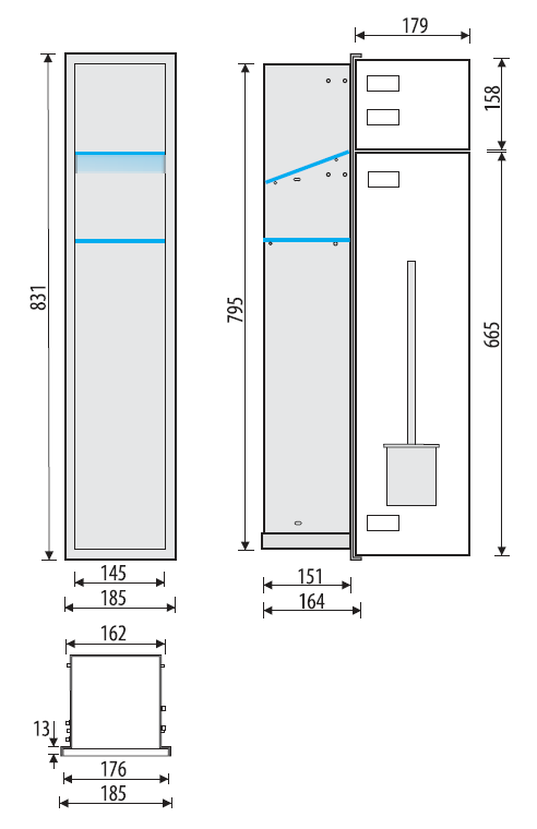 Do zabudowy kaflem schowek podtynkowy WC do szczotki i papieru toaletowego 18x83x16 cm MCJ stal nierdzewna kołnierz typu Zero Z.PW2T WC 800