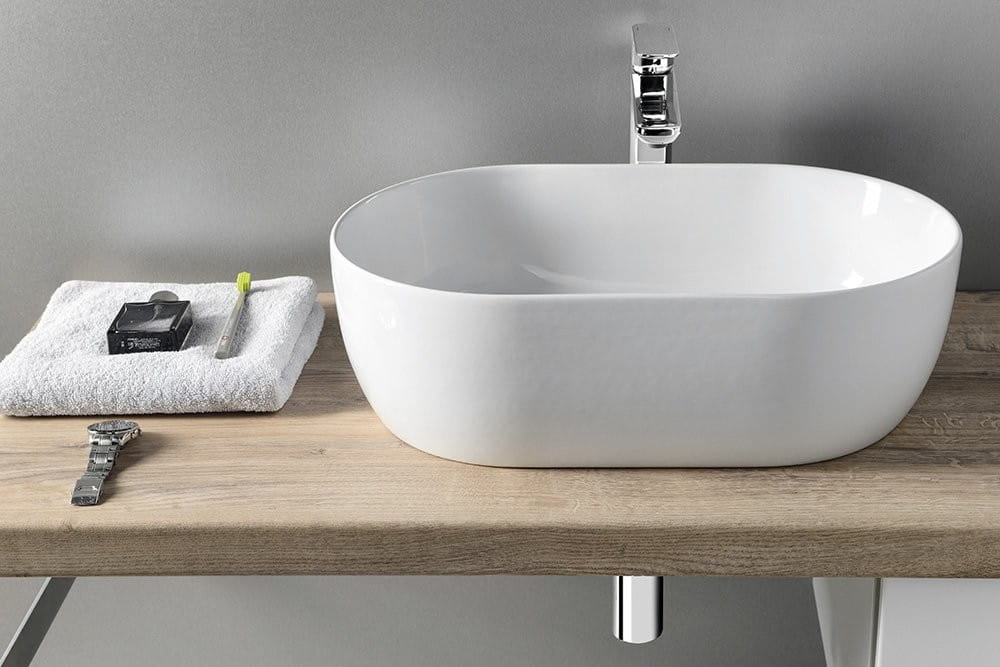 ETELA umywalka ceramiczna 55x36 cm, z korkiem ceramicznym