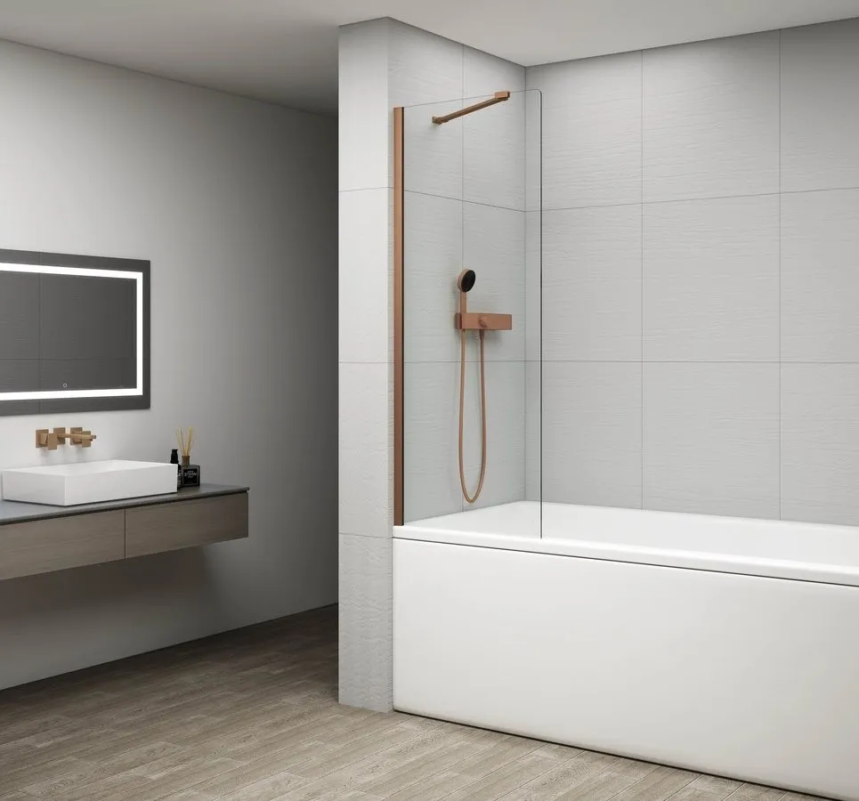 FISA parawan wannowy 600x1500mm, miedź mat, szkło czyste