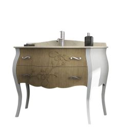 Meble łazienkowe z serii GELSO już na pierwszy rzut oka zachwycają kwiatowym dekorem, który z łatwością wystaje z frontu mebla. Dzięki zaokrąglonym kształtom, ozdobnym uchwytom oraz zestawieniom kolorystycznym złota i srebra, seria doskonale pasuje do łazienek w stylu retro. W wersji bicolor lub czystej bieli meble te staną się dominującym elementem nawet w nowoczesnych łazienkach.