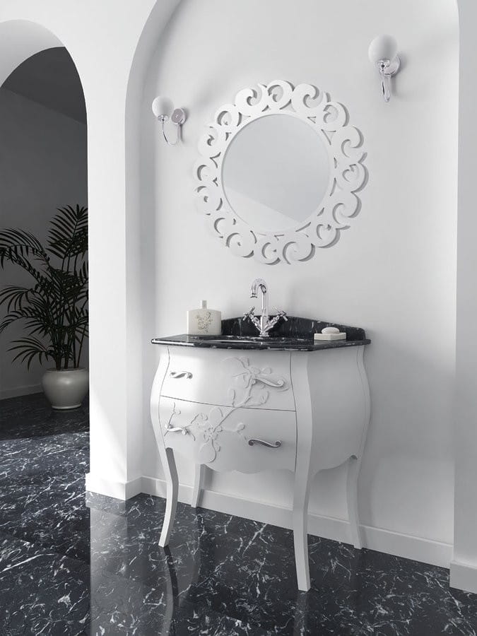 Meble łazienkowe z serii GELSO już na pierwszy rzut oka zachwycają kwiatowym dekorem, który z łatwością wystaje z frontu mebla. Dzięki zaokrąglonym kształtom, ozdobnym uchwytom oraz zestawieniom kolorystycznym złota i srebra, seria doskonale pasuje do łazienek w stylu retro. W wersji bicolor lub czystej bieli meble te staną się dominującym elementem nawet w nowoczesnych łazienkach.