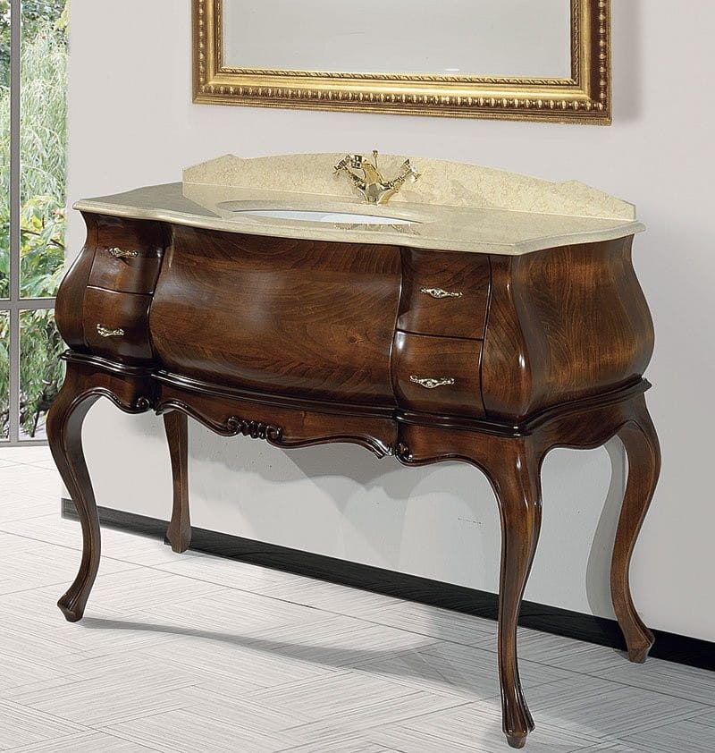 Szafka GIOVE charakteryzuje się pulchnymi barokowymi kształtami. Wróćmy więc do XVII wieku, kiedy popularne były meble barokowe. Najbardziej luksusowe materiały zostały wybrane do tego mebla w XVII wieku i nie różni się to od mebli GIOVE. Meble wykonane są z litego drewna z połączeniem ceramicznych umywalek i marmurowych płyt.