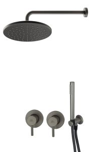 Zestaw natryskowy podtynkowy z okrągłą deszczownicą 22,5 cm i słuchawką prysznicową Paffoni Light LIG018ZSC2AMG grafit